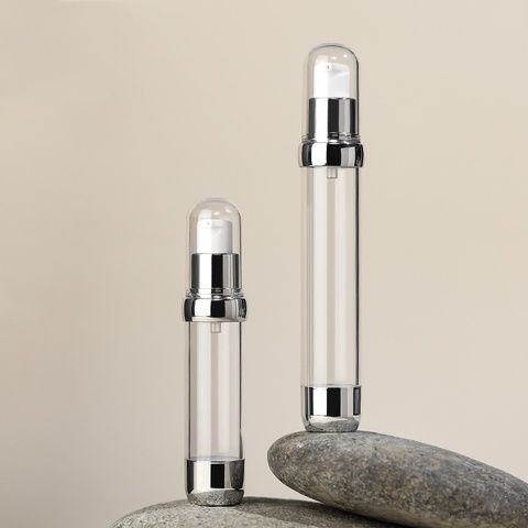 现货亚克力化妆品塑料无气泵瓶,带旋转扣可定制标志印刷,用于乳液液体包装